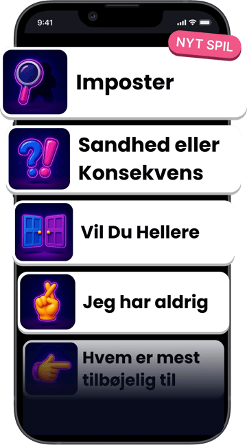 TOZ har over 700 Sandhed eller Konsekvens-spørgsmål. Det er langt flere end hvad du finder på de fleste festspil-sider eller apps. Og det stopper ikke ved ét spil. TOZ bundter 13 festspil i én enkelt app. Du får Never Have I Ever, Would You Rather, Who's Most Likely To, 7 Seconds, She's a 10, King's Cup, Quiz, Team Battle, Imposter, Dare Chooser, Red or Black og Horse Race.